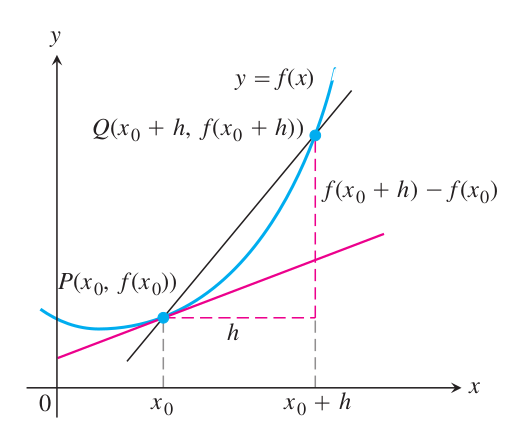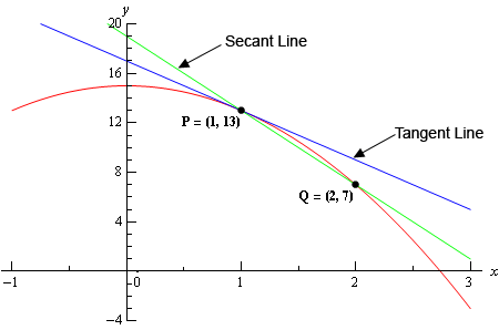 - the tangent to the curve (at P) is the limit of the secant line for Q approaching P.