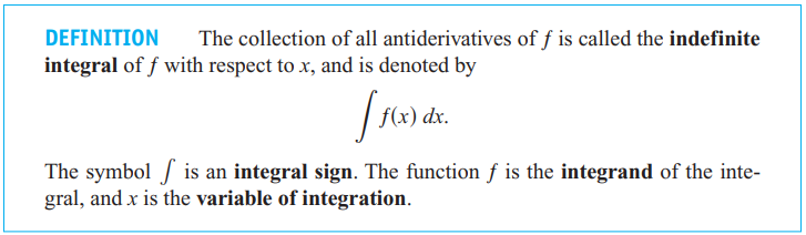 A special symbol is used to denote the collection of all antiderivatives of a function f. After the integral sign the integrand function is always followed by a differential to indicate the variable of integration.