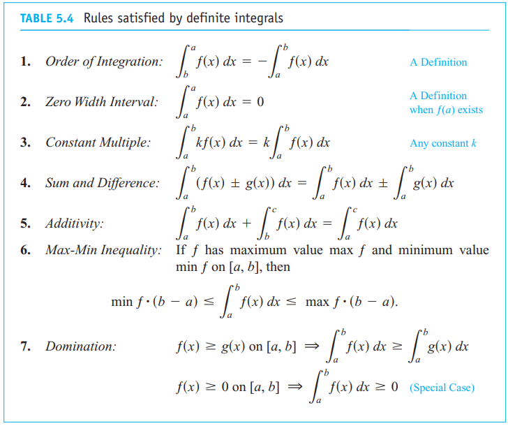 Definite integrals have several important properties which should be remembered: