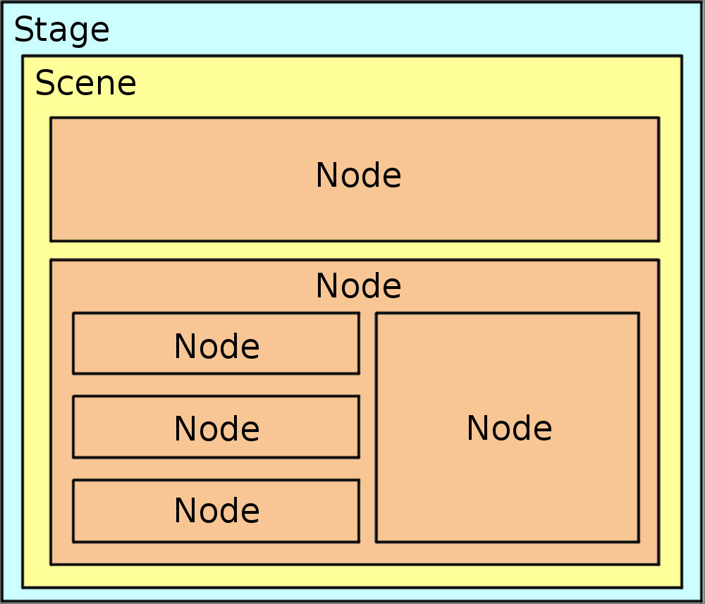 A scene is a container for GUI components. the components placed in scene can themselves be containers, this forms a scene graph