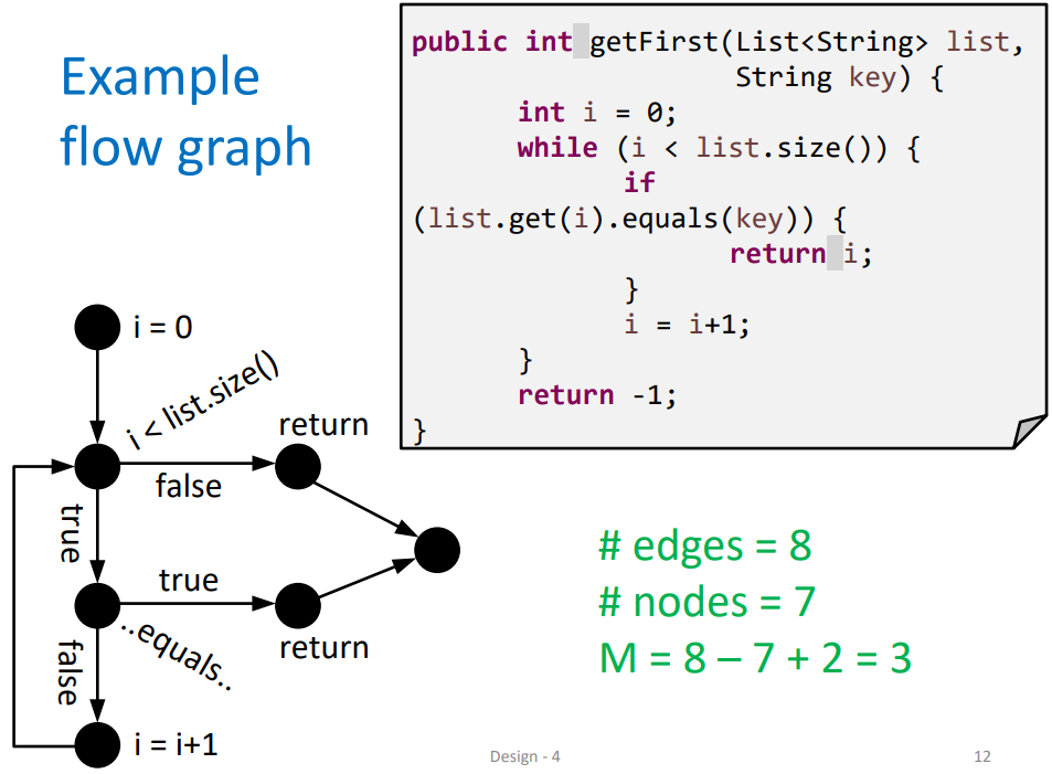 Cyclomatic complexity (M) = #edges - #nodes+2 = (#edges - #nodes+1)+1 = #branch nodes + 1