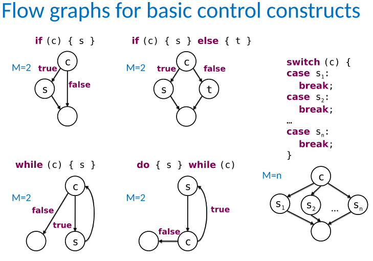The Cyclomatic Complexity of a method is expressed as M. To calculate it we first need to visualize the control flows (conditionals, loops).