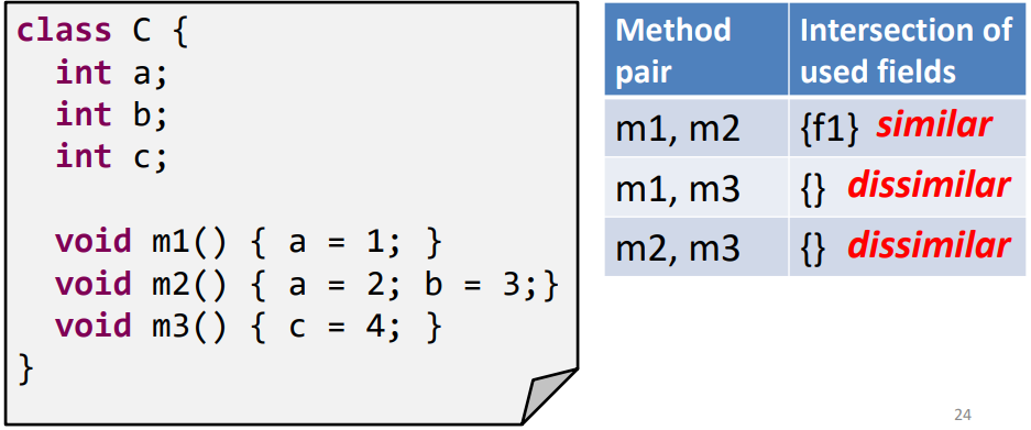 To discuss the lack of cohesion (LCOM) we first look at how cohesion is defined. Cohesion in a class is related to how similar it’s methods are. Methods are similar when they access common fields.