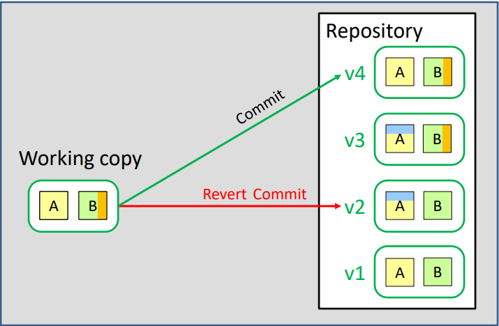 With version control it's easy to undo earlier changes without affecting other changes. When a commit (save to repository) is reverted, a new version without the reverted change but still containing all the other changes will be the working copy. The working copy can then be committed to the repository.